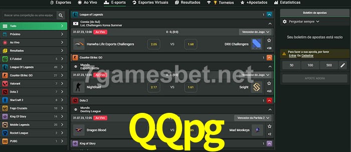 O QQpg oferece uma grande seleção de opções de apostas em e-sports com probabilidades competitivas